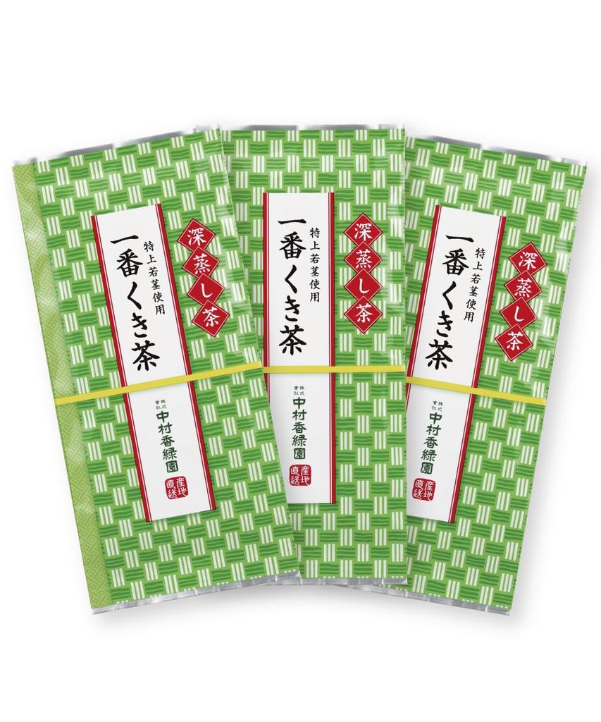 Nakamura Koryokuen's Deep-Steamed Tea "Ichiban Kukicha 3-Pack" from Kakegawa Tea District, a Generous 600g (3 X 200g Bags) Made with Premium Young