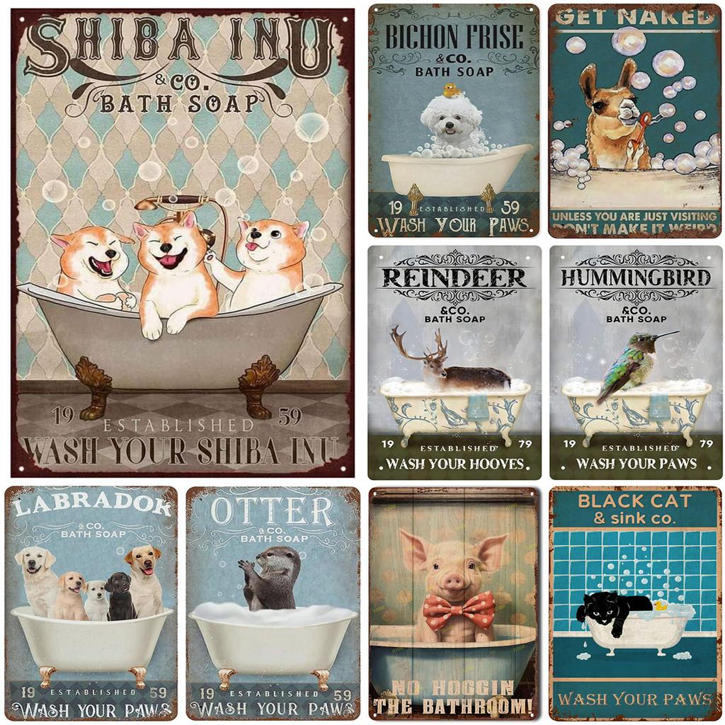 Retro Metal Tin Signs Cat Dog Bath Soap Wash Your Paw Bubble Posters Vintage Toilet Cave Bar Home Bathroom Wall Decoration Signs