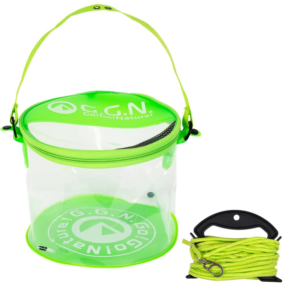 G.G.N. Go Go Bakkan Fishing Transparent Bakkan Folding Bucket Water Fetching Rope Green Approx. 25 X 25 X 20 Cm