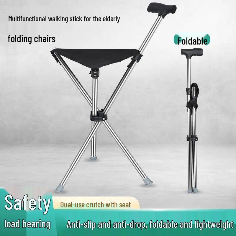 Portable Foldable Non-slip Stainless Steel Walking Stick with Seat