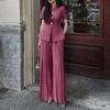 ZANZEA Women Short Sleeve Blouse and Wide Leg Pants Casual Two Piece Suit Set