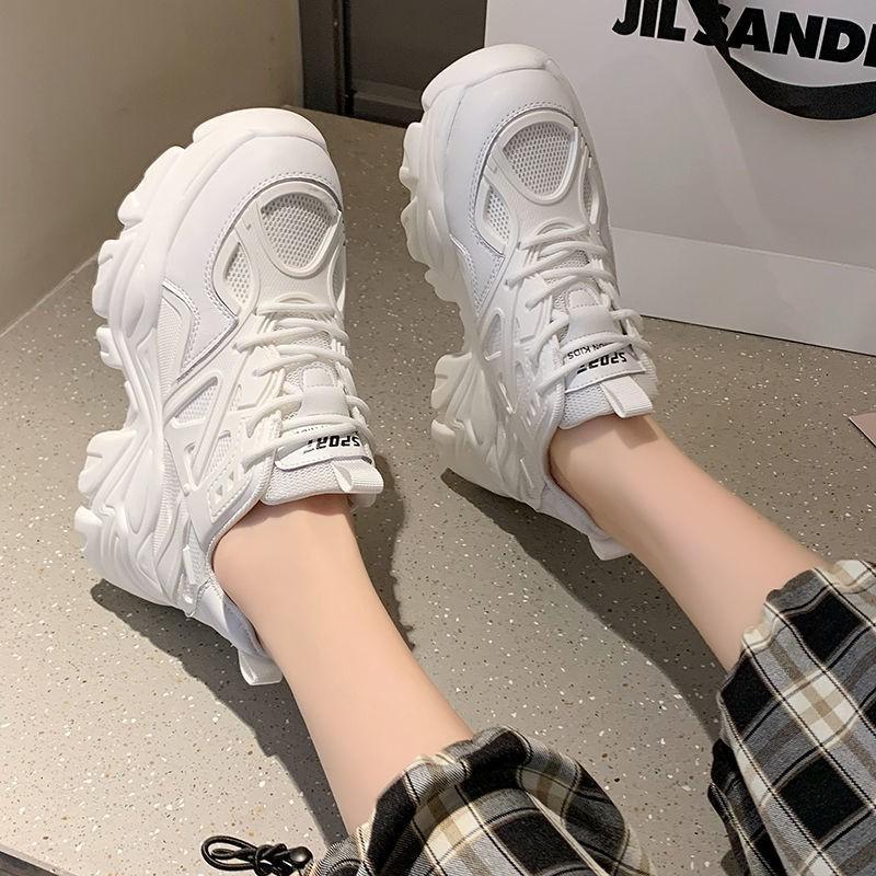 Shoes Women, Dad Shoes 2025 Autumn New Thick-soled Breathable Single Sports High-heeled Kitten Legs Little White Women's Shoes