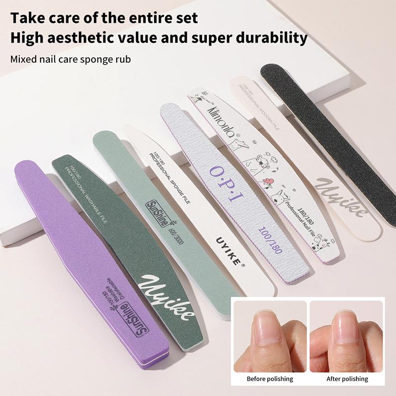 1Pcs Mixed Nail Care Sponge Scrubbing Sand Paper Nail File Buffer Double-Sided Strips Manicure Nail Art Files Durable Washing