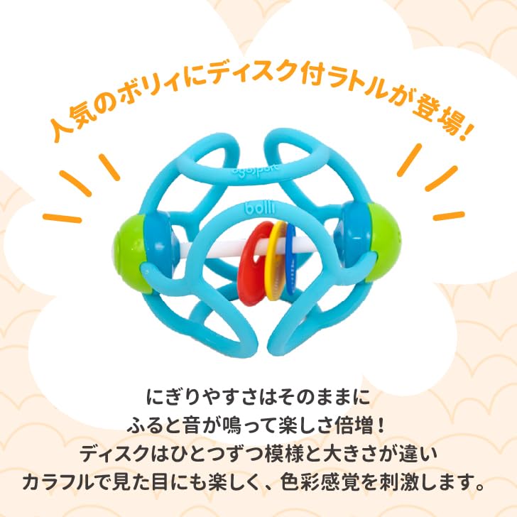 Bolly Rattle First Ball Teething Made with Safe Sky Baby Gift Rattle, Squeeze, Bite, Pull, Materials, Blue,