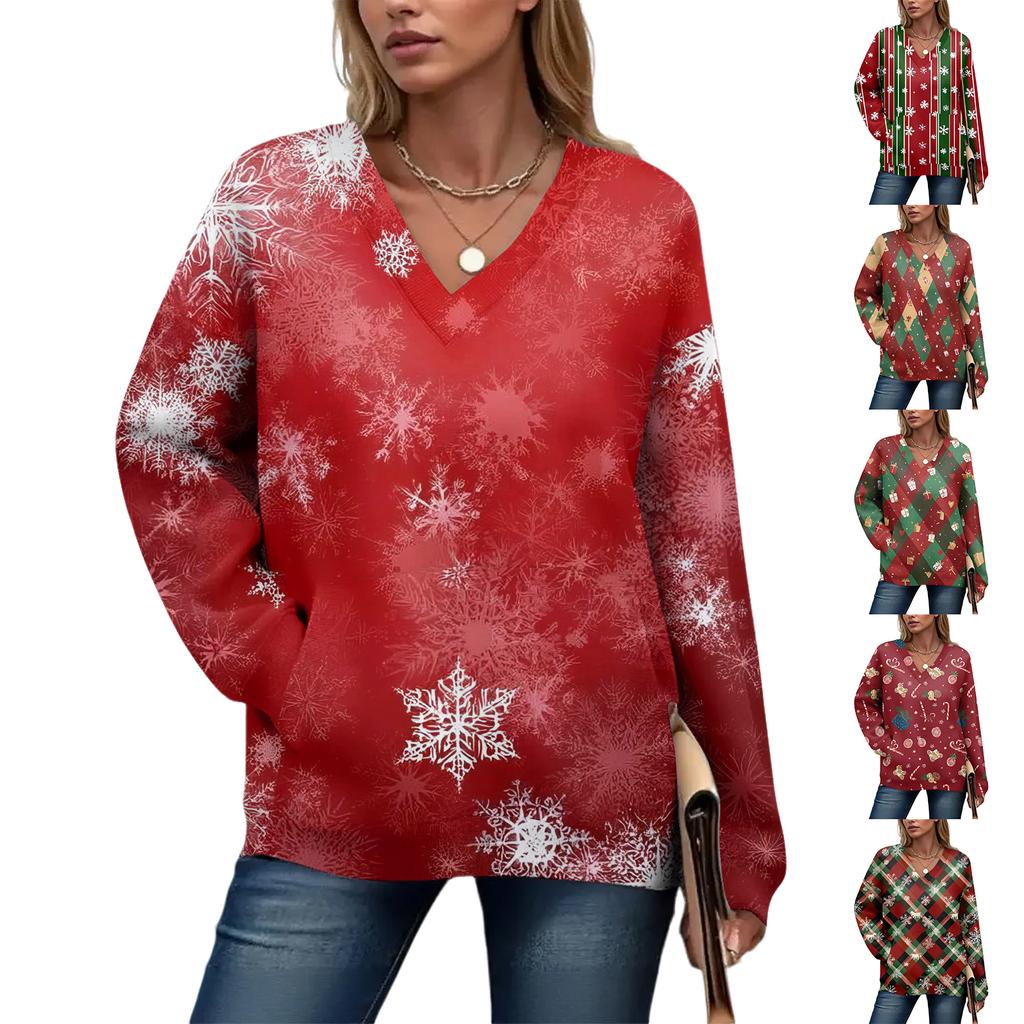 Women's Casual And Fashionable Christmas Print Long-Sleeved Top