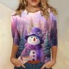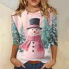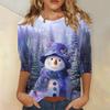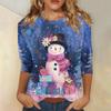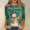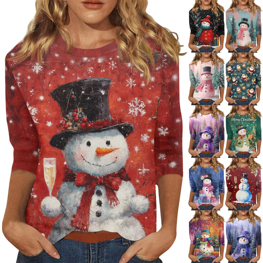 3/4 Sleeve Shirts For Women Print Christmas Tees Blouses Casual Plus Basic Tops Pullover