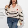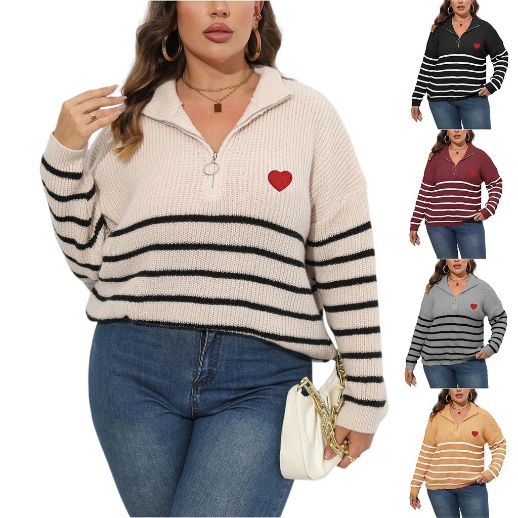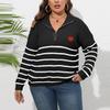 Women's Fashion Large Striped Stitching Half-Turtleneck Zipper Heart Knitted Sweater
