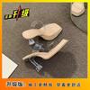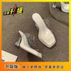 2025 Summer New Popular Transparent Crystal Heel Waterproof Table Thick Heel High Heel Cool Slippers Wear Fairy Style Women's Shoes