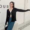 Tencel Cardigan Korean V Neck Knit Top Solid Summer Air Conditioning Cover Long Sleeve Base Layer Women Slim Fit
