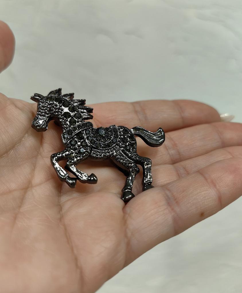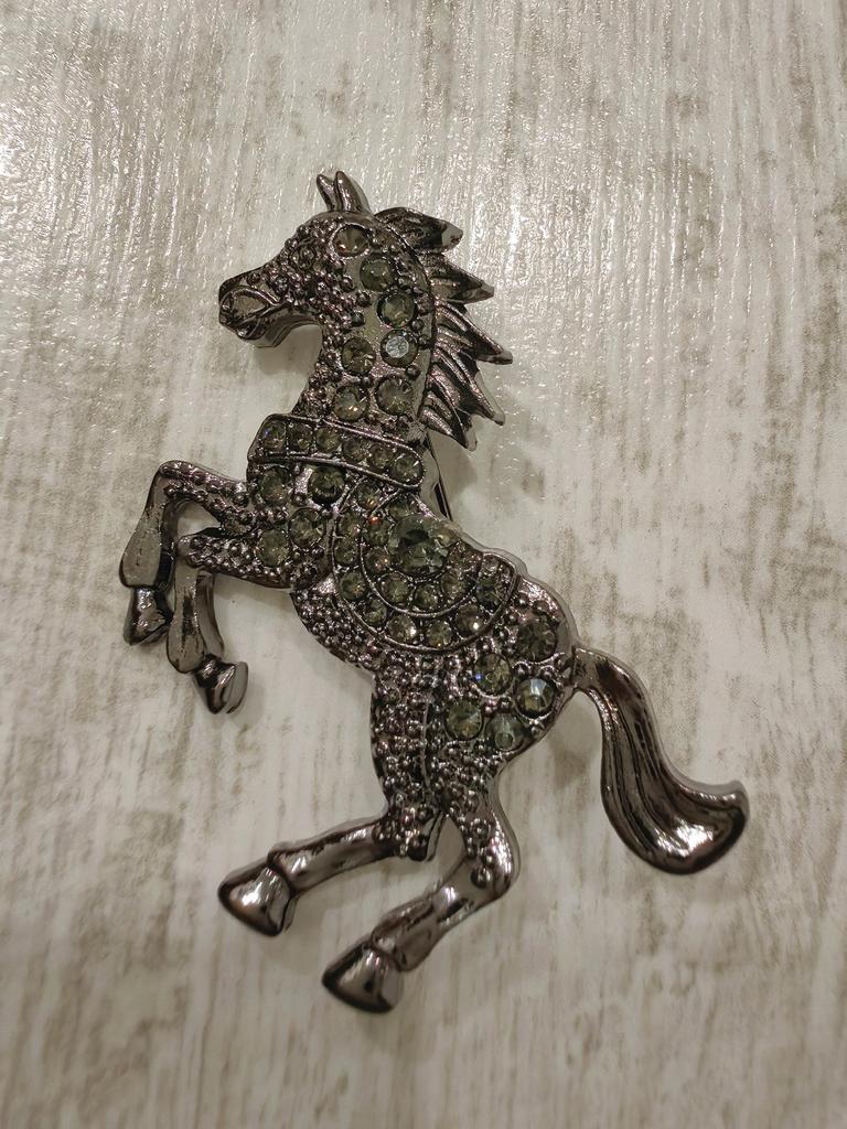 Add a touch of sophistication to your outfit with this versatile horse brooch. Whether pinned on clothes, hats, bags, or scarves, it effortlessly elevates your style and adds a hint of glamour to your look.