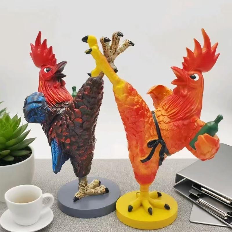 Creative Kung Fu Chicken Statues Resin Decor Living Room Porch Decoration Simulation Sculpture Art Craft Indoor Home Decorations