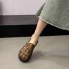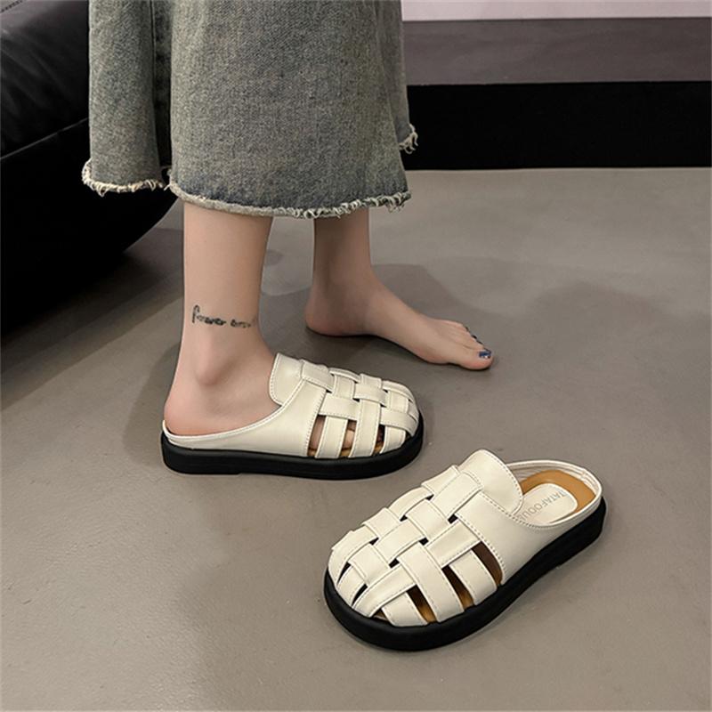 Women's Flat Bot Hollow Woven Sandals Open Toe Slip-On Summer Oes Korean Sle Knot PU Material Rubber Sole