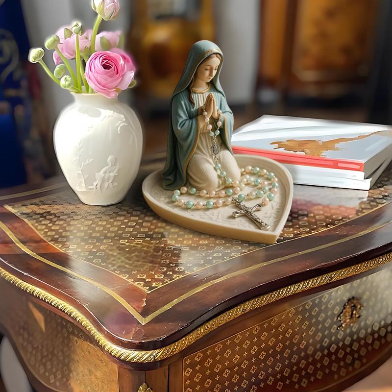 Virgin Mary Rosary Holder,Elegant Our Lady Prayer Rosary Box Religious Gift Catholic Gift, Mary And Jesus Heart Statue Tray