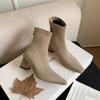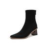 6CM Niche Fashion Simple Elastic Thin Boots 2025 Autumn and Winter New Square Head Thick Heel Rear Zipper High Heel Short Boots