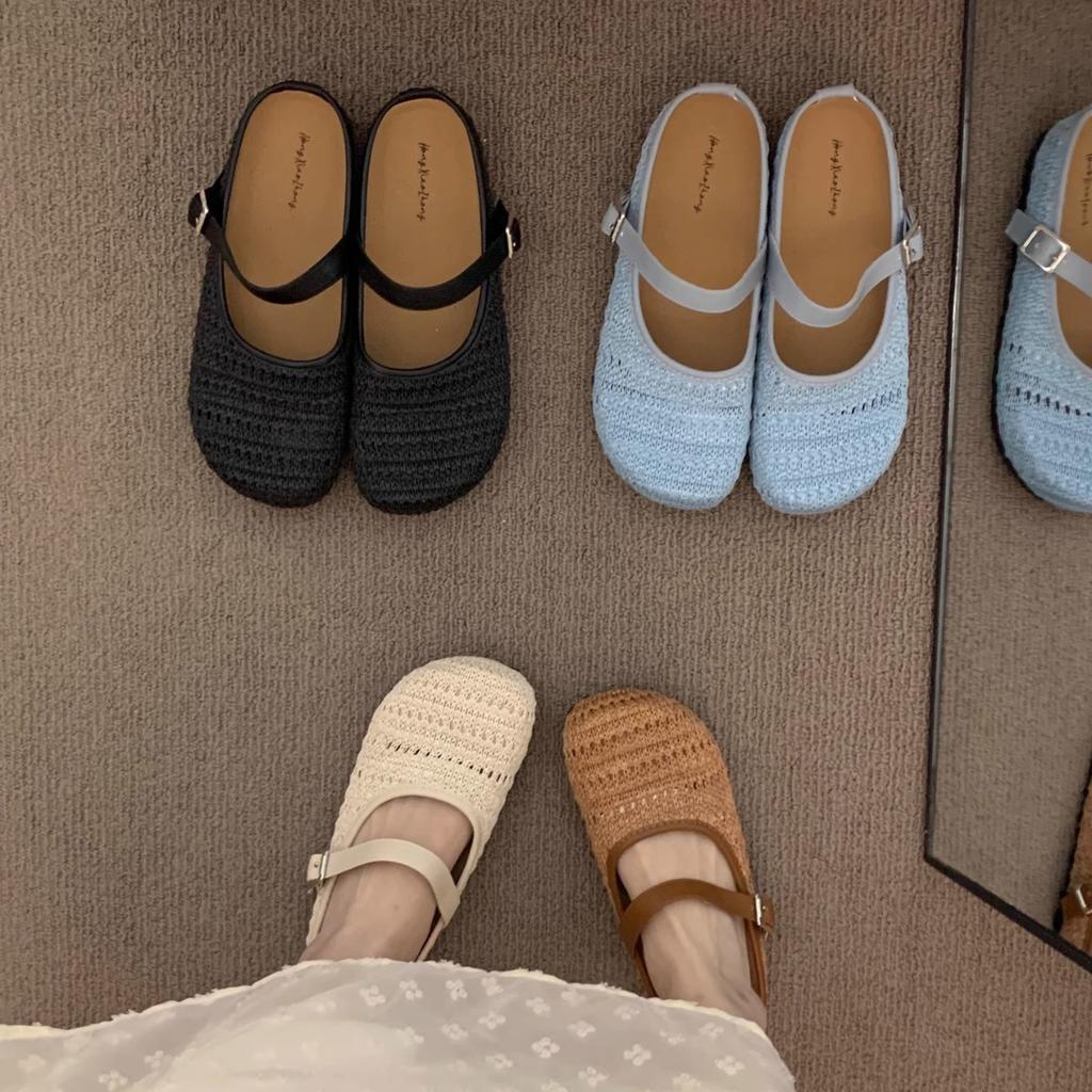 Weaving Gentle Evening Breeze Platform Bohemian Boken Shoes Women's Outer Wear Spring and Summer Vacation Mary Jane Semi-Tow Shoes