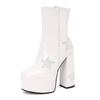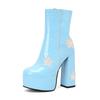 Plus Size Shiny Patent Leather Inlaid with Five-Star Sequin Cloth Super High Platform Women's Short Boots Side Zipper Sweet Boot