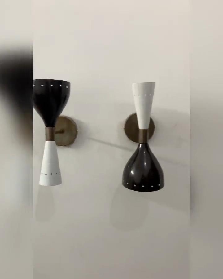 Mid Century Brass Diabolo Wall Sconce Pair: Italian Bedside Lamp
