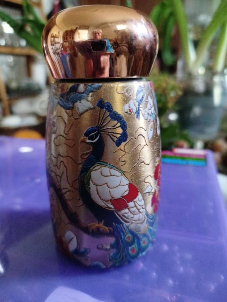 Very beautiful metal thermos with a screw-on lid