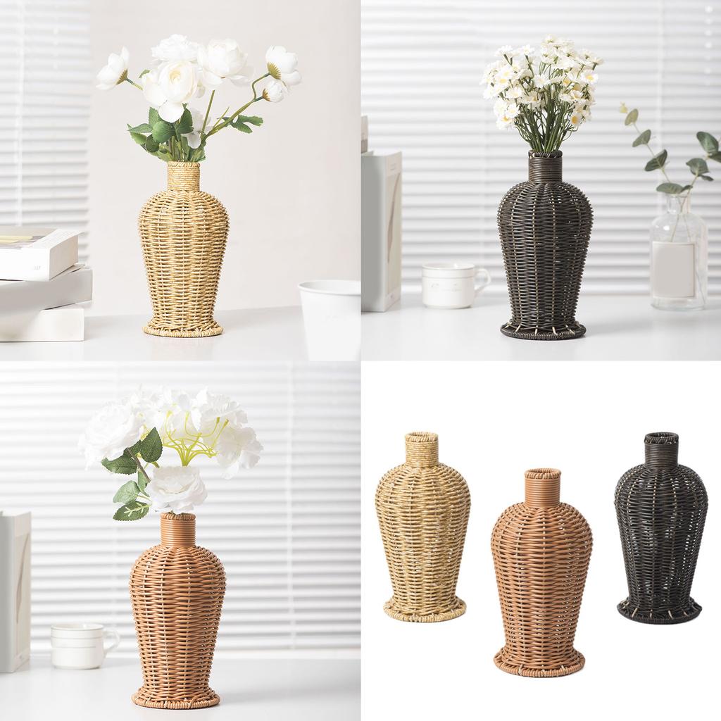 Elevates your home decors with the Faux Rattan Woven Flower Vase, a great centerpieces that combines retro charm with modern elegances, great for adding a natural touches to any space.