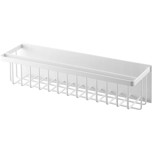 Yamazaki Tower Magnetic Bathroom Basket, Wide, White, Approx. W44.3 X D12.3 X H12cm, with Hooks, Slim Depth, Floating Storage, Model 3769