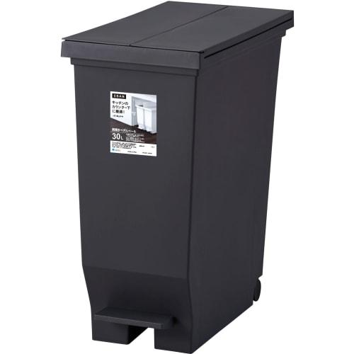 Asvel Trash Can with Lid, Double-Opening Pedal, Under-Counter Storage, 30L, Black, Hygienic, A6303