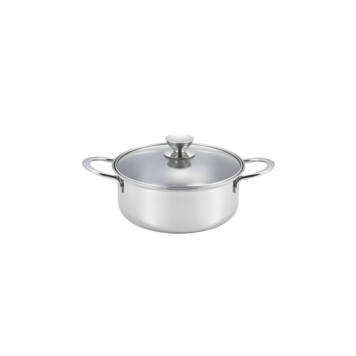 Maruyama Lucente 20cm 2.6L Double-Handled Pot with Glass Lid (LU-20R), Induction and Gas Stove Compatible, Stainless Steel Glass Lid, Made In Japan, T