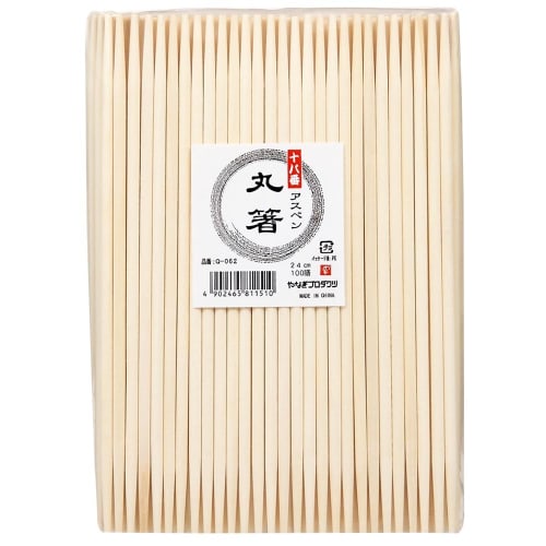 Juhachiban Aspen Round Chopsticks, 24cm, 100 Pairs, Pre-broken, Q-062