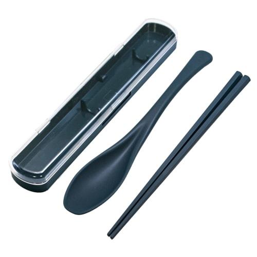 Sunny Life Design Chopsticks and Spoon Combo Set for Lunch Boxes, Dishwasher Safe, TAB.LAB Tip, Antibacterial Finish, Navy, Made In Japan