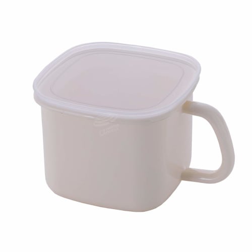 Fuji Enamel Storage Container, Square Miso Pot with Airtight Lid, Vanilla, C-KP.VA