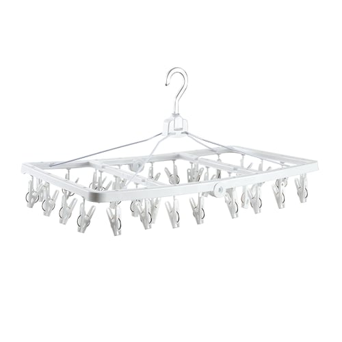 AYO Pinch Hanger, Corner Hanger, Laundry Hanger, Indoor Drying Hanger with 32 Pinch Clothespins, Foldable, Space-Saving, Multi-Functional Storage, Whi