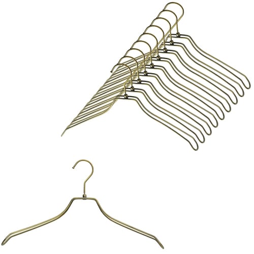 TAMATOSHI Double Steel Hangers, 38cm Wide, Antique Gold Plated, 10 Pieces, 5-Year Warranty, Developed by a Retail Fixture Manufacturer, Slim, Luxury,