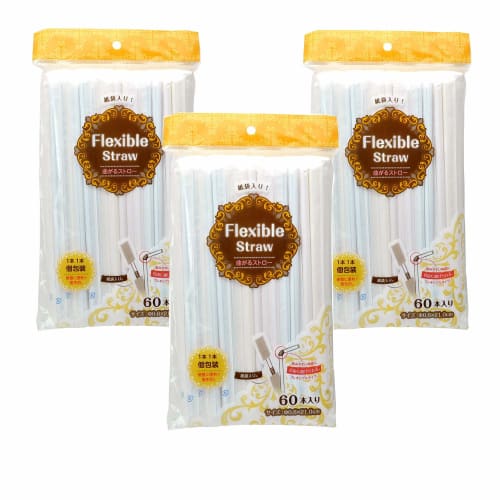 Strix Design Flexible Straws, Striped, 3 Colors, 6mm Diameter X 21cm Length, 180 Straws (3 Packs of 60 Straws), Paper Bag, MA-264