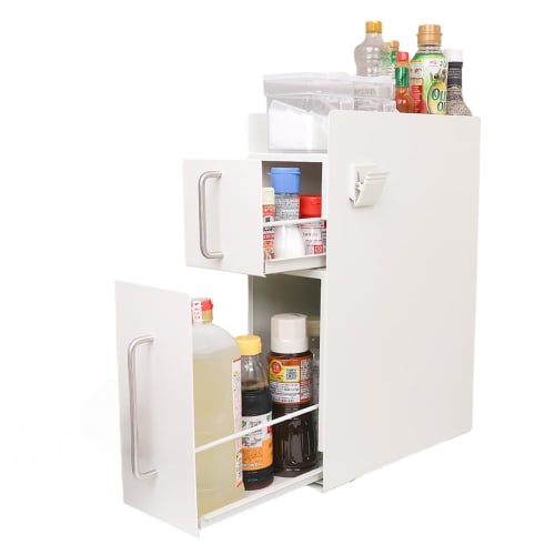 Rocotto Condiment Rack, Slim, Sliding, Large Capacity, Drawer-Style, Space-Saving, Magnetic Compatible, for Next To Stovetop Storage (03. White (2 Tie