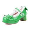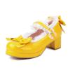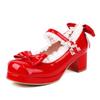 2025 Plus Size 43 Women's Candy Colors Mary Janes Pumps Bow Tie Ruffles Black Pink Platform Sweet Block Heels Lolita Shoes