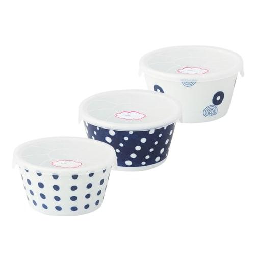 Nishikai Toki Hasami Ware Indigo Japan Microwave Pack Canister Set with Lid, 11x6cm Diameter, 3 Designs (Gift Boxed), Microwave and Dishwasher Safe, I