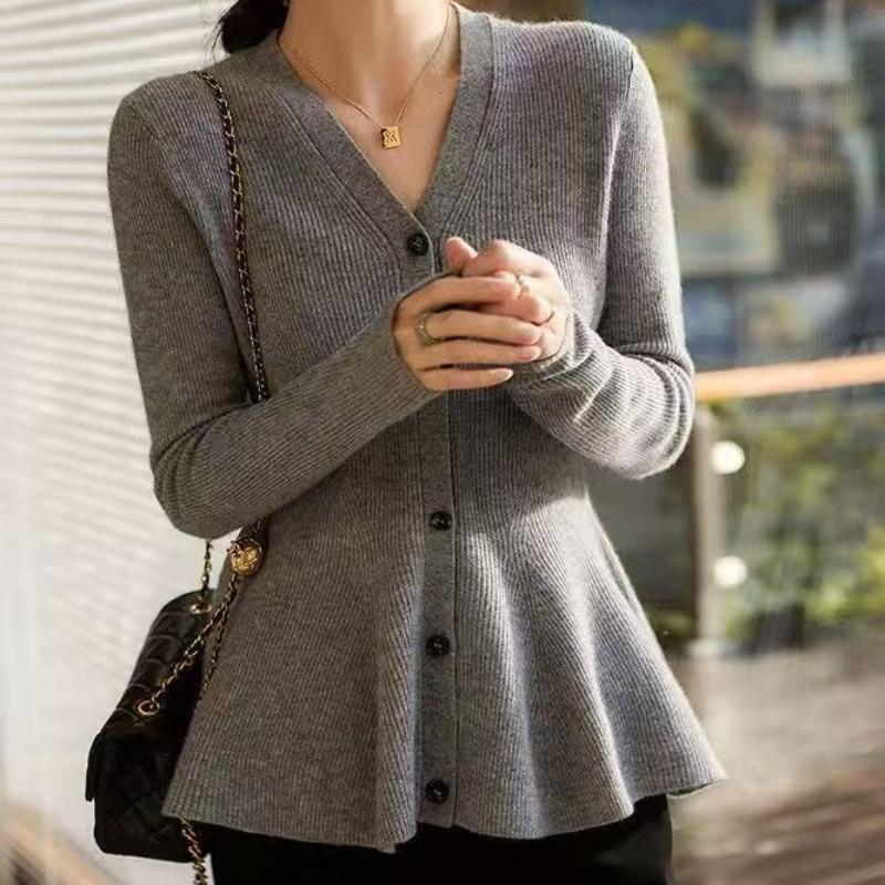 Designer Fishtail Hem Waist Slimming Knit Sweater Women Autumn Winter V Neck Versatile Cardigan Top