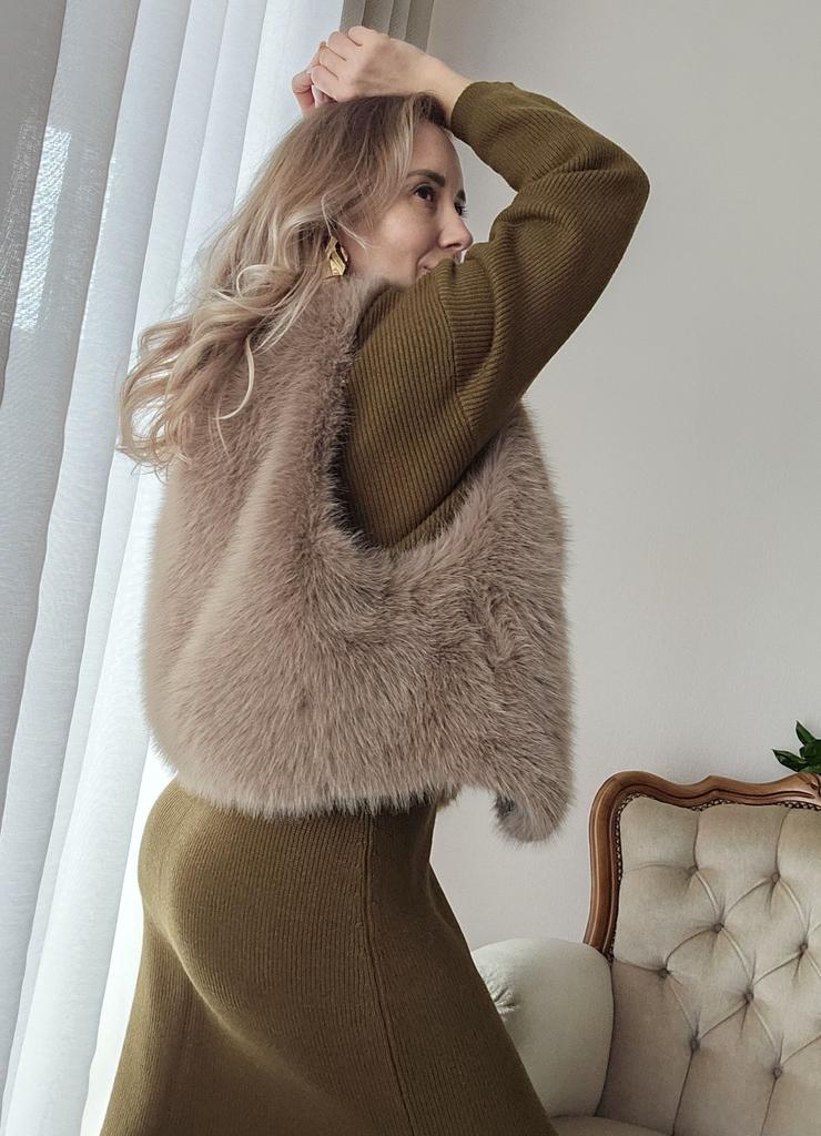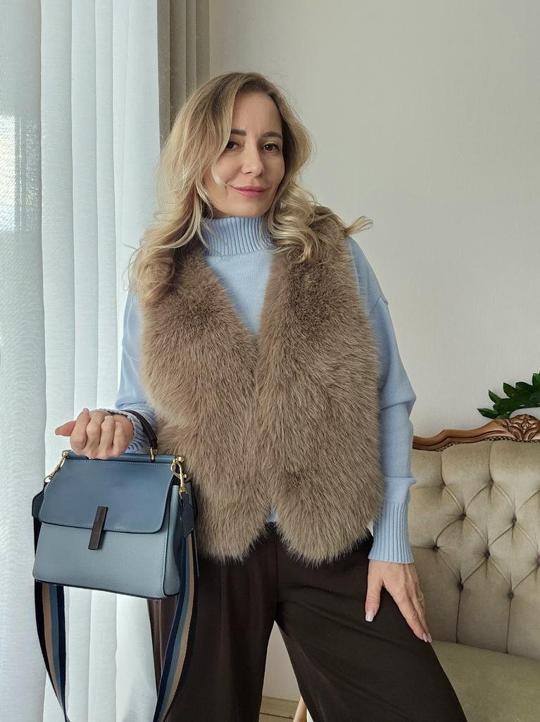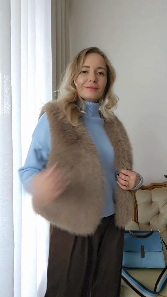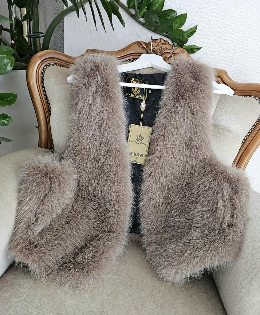Very beautiful vest! Indistinguishable from real fur! Sits elegantly, pockets are in place, color of natural fur! Thank you! I am absolutely delighted!