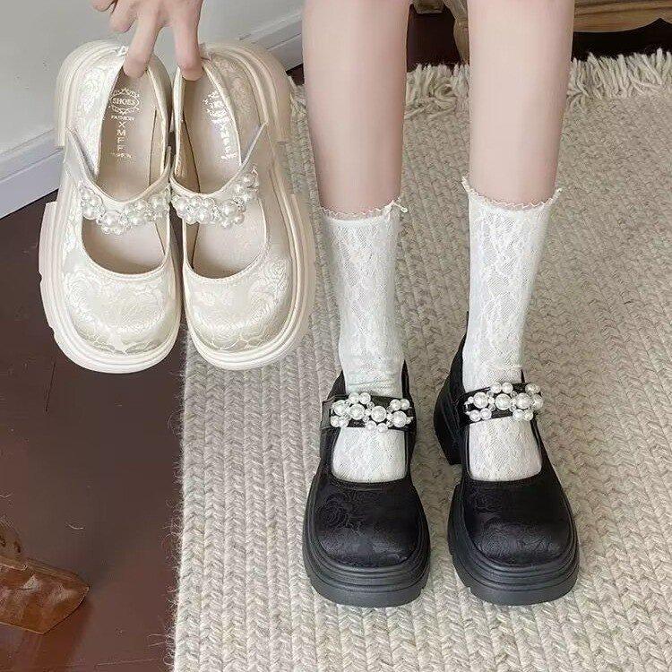 Mary Jane Small Leather Shoes Women's Platform 2025 Summer New Retro Thick Heel Heightening Pearl New Chinese Skirt Shoes