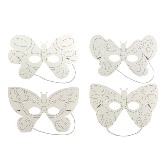Children's Masks Butterflies White Cardboard 15 X 25 Cm X 4 Pieces