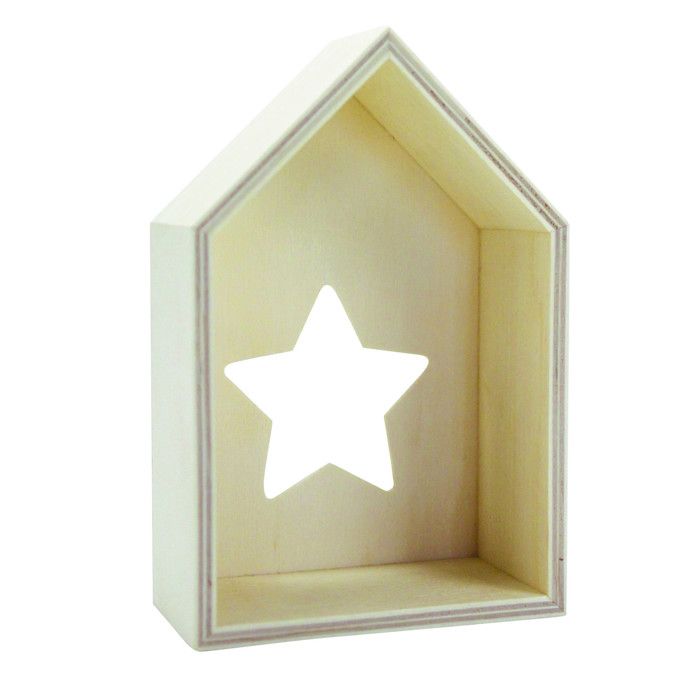 Maison en bois - MEGACREA DIY - Découpe étoile - 14,5x9,5x4,8 cm - Bois naturel - Personnalisable
