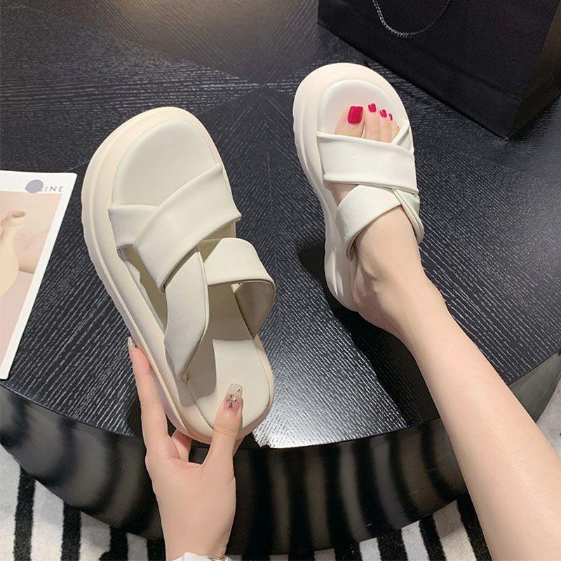 Internet Celebrity Platform Slippers Outer Wear Women's Summer 2025 European Popular Sandals Heightened High-end Sense Fried Street Sandals Soft Botto