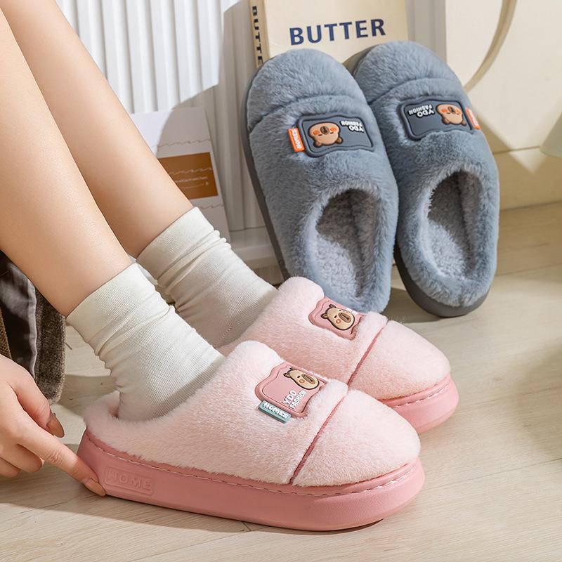 Cartoon Plush Cotton Shoes Autumn and Winter Indoor Home Plush EVA Sole, Couple Thick-soled Warm Cotton Slippers