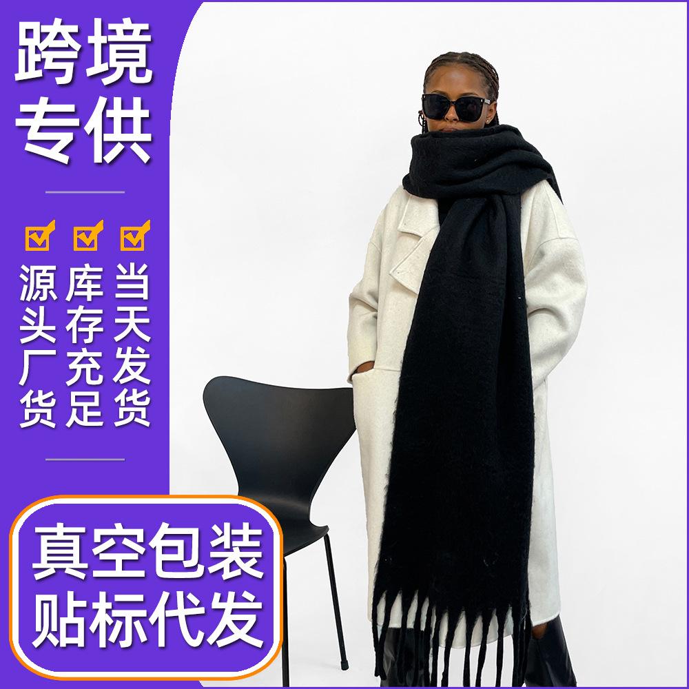 Black Mohair Scarf Vacuum Packaging Women's Solid Color Warm Scarf