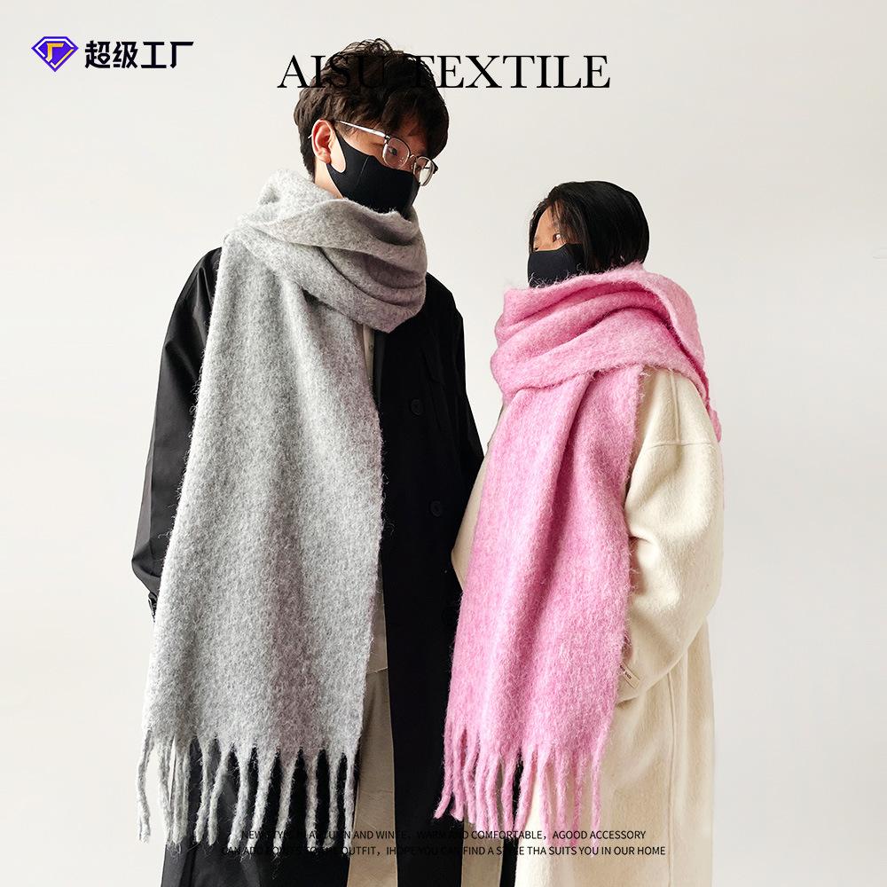 Autumn and Winter Thickened Scarf Couple Mohair Scarf Women's Versatile High-end Thickened Warm Scarf Solid Color Shawl
