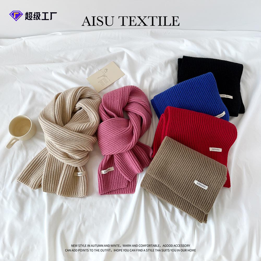 Winter Knitted Acrylic Small Scarf Women's New High-end Monochrome Korean Powder Simple Matching Scarf