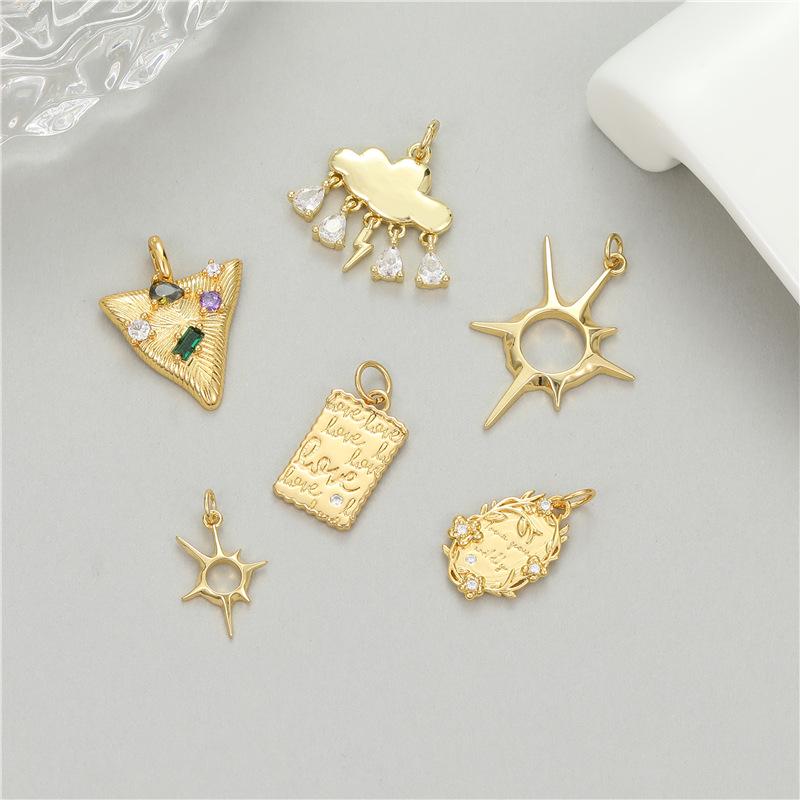 14K Gold-Plated Copper Star, Moon, Cloud Charm Set: Pendant, Bracelet, Necklace, Earrings - DIY Jewelry Materials.