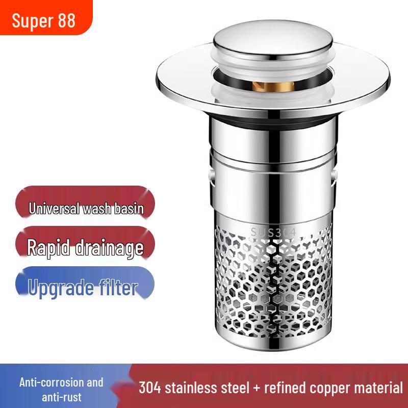 Stainless Steel Pop-up Drain Stopper with Anti-odor Mesh Filter