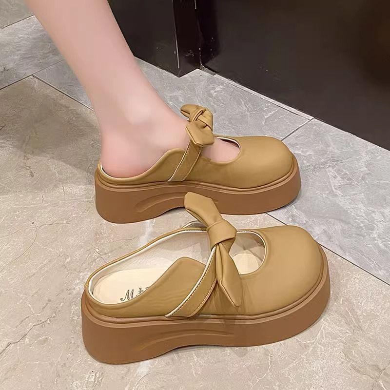 Commuting Versatile Niche One-pedal Slippers Woman 2025 Summer New Muffin Bottom Foreign Gas Heightened Baotou Half Slippers Woman
