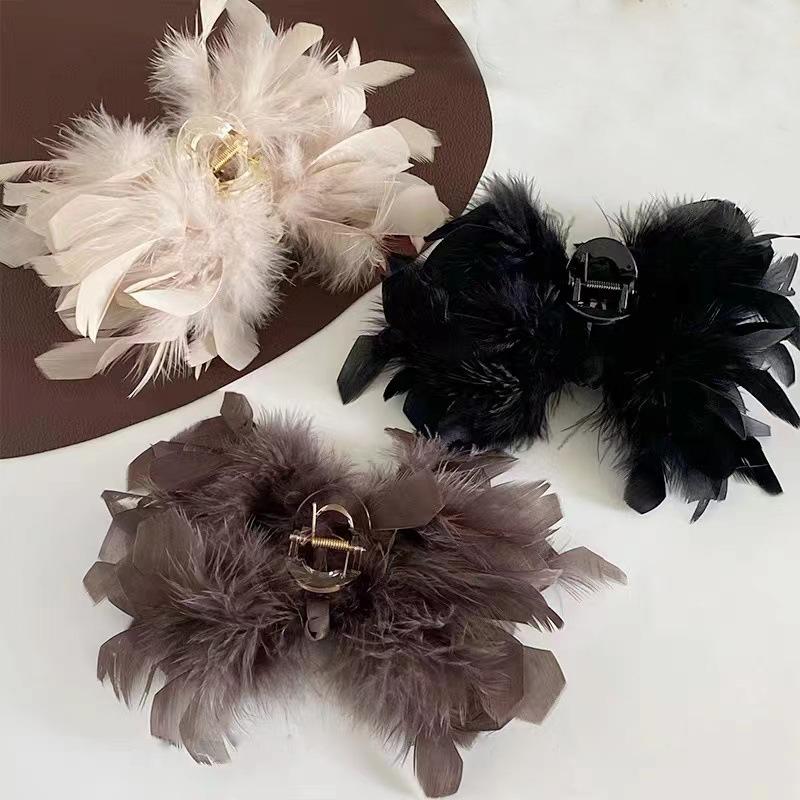 Temperament Feather Ostrich Feather Large Catching Clip Back of Head Hairy Shark Clip Hairy Hairpin Female