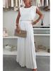 Elevate your wardrobe with this stylish ensemble, featuring a sleek sleeveless round neck top paired with elegant pleated wide-leg pants. Designed with a solid pattern, this fashion-forward set exudes a modern and chic aesthetic. Crafted from high-quality polyester, it offers durability and comfort, perfect for any occasion. The sportive style adds a touch of casual elegance, making it a versatile choice for both daytime outings and evening gatherings.